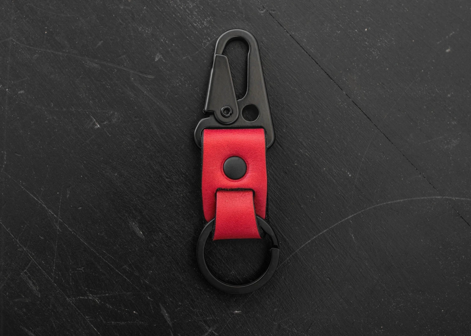 Using our full grain American tanned leather, they designed an edgy yet effective key chain which includes a popular key snap and matching keyring hardware.Â