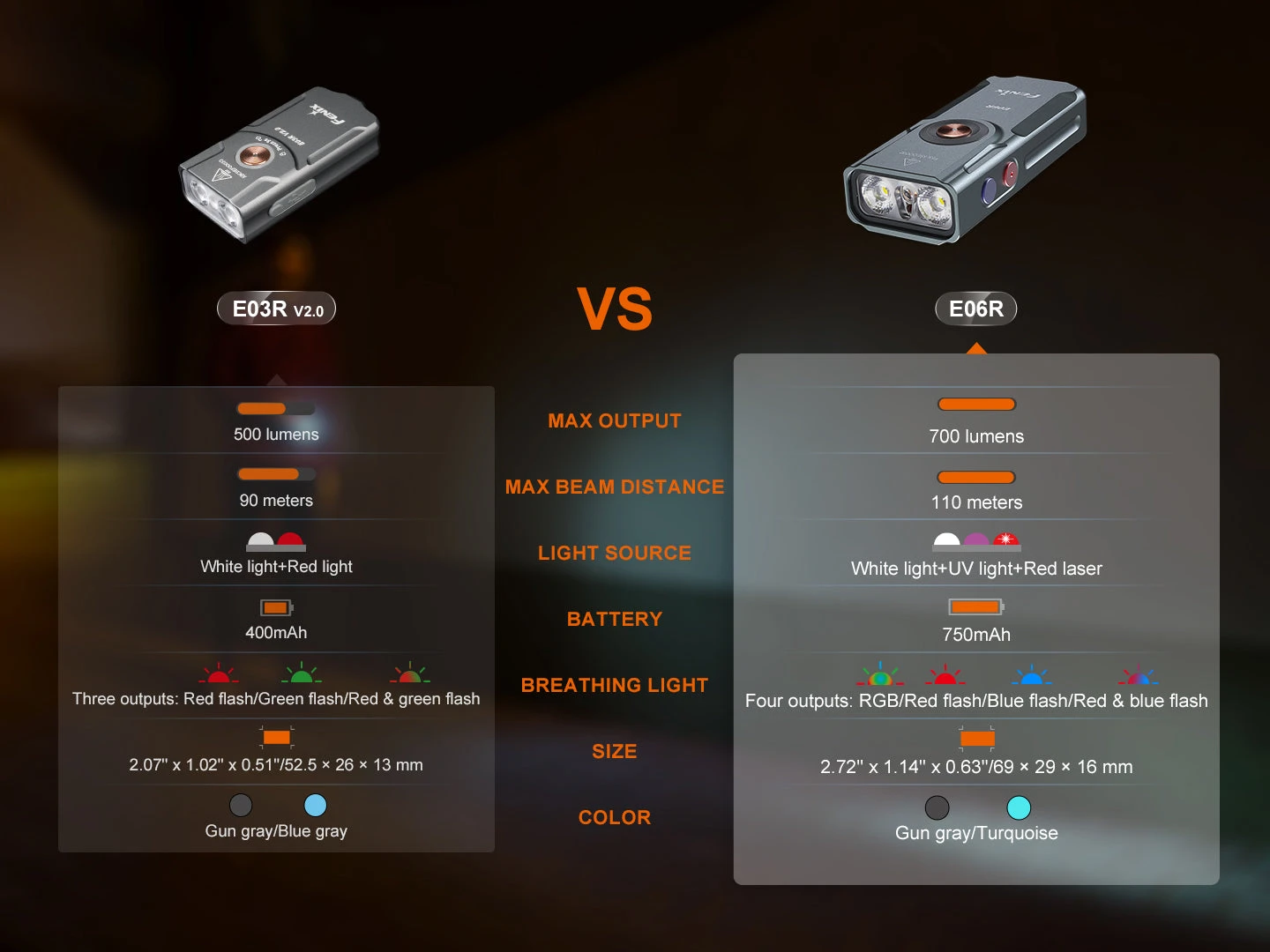 The Fenix E06R Keychain Light is a compact powerhouse that boasts an impressive 700-lumen maximum output and a range of light options including white light, UV light, and a red laser pointer light, making it perfect for everything from everyday tasks to specialty applications. The innovative RGB color ring light adds dynamic functionality with swirl, flashing, and breathing modes, ensuring visibility and style. Its magnetic tail allows for convenient hands-free use, while the durable solid metal exterior is IP66 waterproof and drop-tested to 1.5 meters, offering rugged durability in any environment.