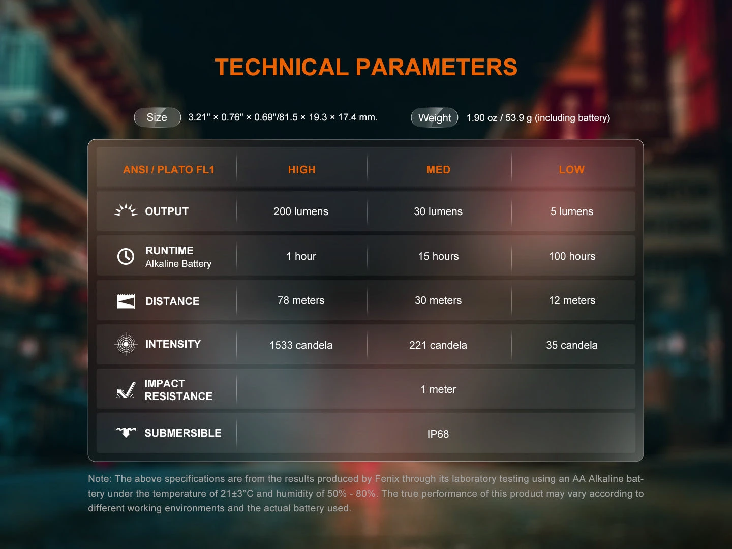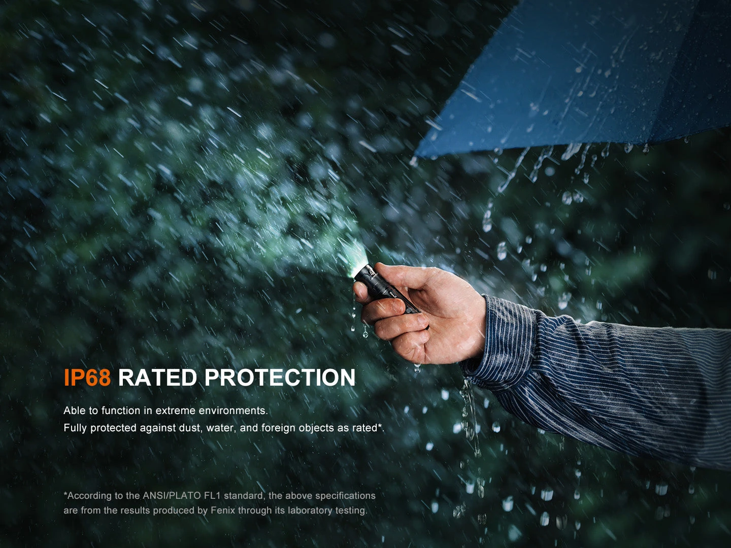 The Fenix E12 V3 is a compact powerhouse designed for everyday carry. This flashlight delivers a maximum output of 200 lumens, powered by a single AA battery for convenient replacements. The flat tail design allows for tail standing and features a strong magnet for hands-free use on magnetic surfaces. The two-way body clip allows for secure attachment to your pocket, belt, backpack strap, or even to a cap as a makeshift headlamp. With an intelligent memory function, the E12 V3 remembers your last used output. It boasts a beam distance of up to 256 feet and offers up to 100 hours of runtime. The single switch output selection lets you easily switch between three output levels. Built to withstand tough conditions, the E12 V3 is impact-resistant to 1.5 meters and features IP68 rated waterproofing, making it fully protected against dust and water submersion up to 2 meters. Compact and lightweight, it fits easily into your bag, backpack, or pocket, making it the perfect everyday companion for any situation.